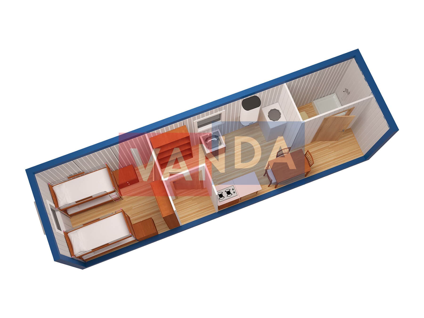 Металлическая бытовка с кухней в тамбуре 5,85 x 2,4 - Вагонка ПВХ