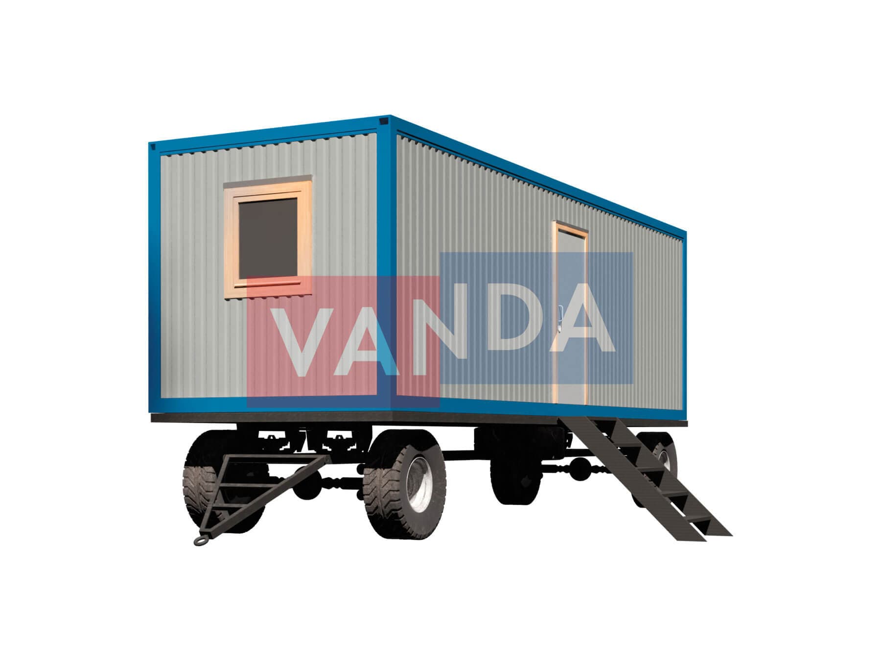 Вагончик на шасси 8,0 x 2,4 изготавливается из несущего каркаса (верхняя и нижняя обвязка): швеллер 100х50х3 мм., угловые стойки: сложно - гнутый угол 90х90х3 мм., крыша блок-контейнера: металл сварной 0,9-1 мм., качественная наружная отделка: оцинкованный профлист, внутренняя отделка стен: Панели ПВХ, внутренняя отделка потолка: Панели ПВХ, вспомогательный деревянный каркас (стены): брусок 40х75 мм., лаги пола: обрезная доска 40х100 мм., лаги потолка: обрезная доска 40х100 мм., выполнено утепление: Минеральная вата «ISOVER» – 50 мм. и пароизоляция: плёнка техническая, черновой пол состоит из: обрезная доска 20 мм. (2 сорт), чистовой пол покрыт: ДСП строительное 16 мм., отделка пола выполнена из качественных материалов. Контейнер комплектуется окнами: деревянное, двойное остекление 800х1000, входной дверью: ДГ 21-8 обшита снаружи оцинкованным листом, врезной замок и внутренними дверями: ДГ 21-8 (при наличии перегородки). Если в БК присутствуют перегородки, то для них используется: брусок 40х50 мм.