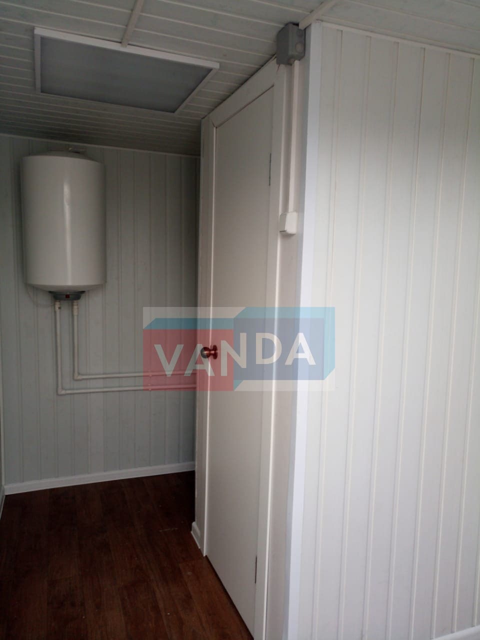 Металлическая бытовка с кухней в тамбуре 5,85 x 2,4 - Вагонка деревянная